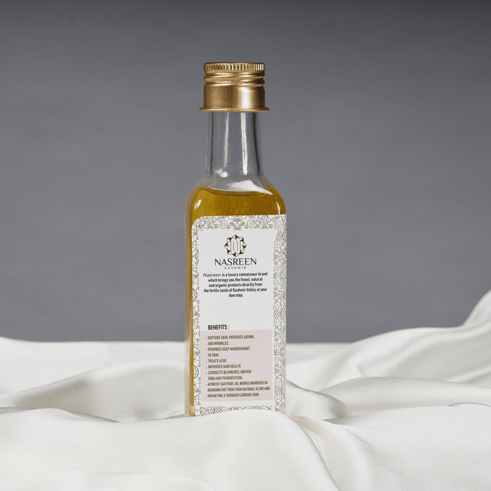 Experience the luxurious blend of Apricot Saffron Oil, a premium combination of cold-pressed apricot oil enriched with natural saffron extracts. This nourishing oil is rich in antioxidants, vitamins A and E, and essential fatty acids, making it ideal for skin hydration, hair care, and overall wellness. Its light texture absorbs quickly, leaving a subtle saffron fragrance while promoting healthy, glowing skin and silky, nourished hair.