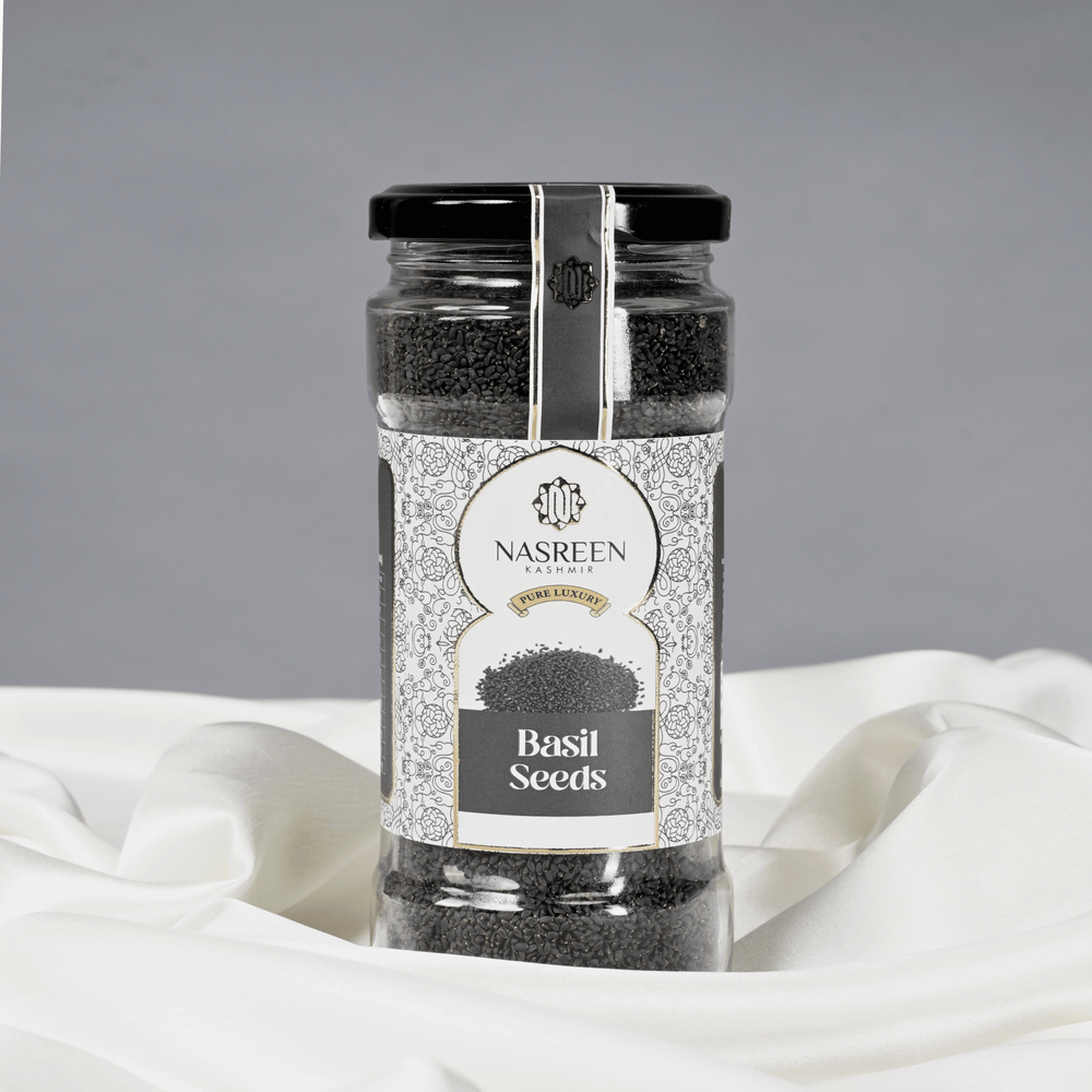 Discover the natural goodness of Basil Seeds, also known as Sabja or Tukmaria, packed fresh in a convenient PET jar. These tiny black seeds are loaded with essential nutrients, making them a perfect addition to a healthy lifestyle. Naturally cooling and refreshing, basil seeds are widely used in drinks, desserts, and traditional recipes for their soothing properties.