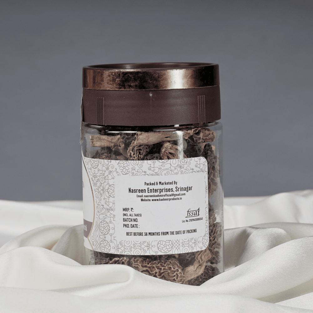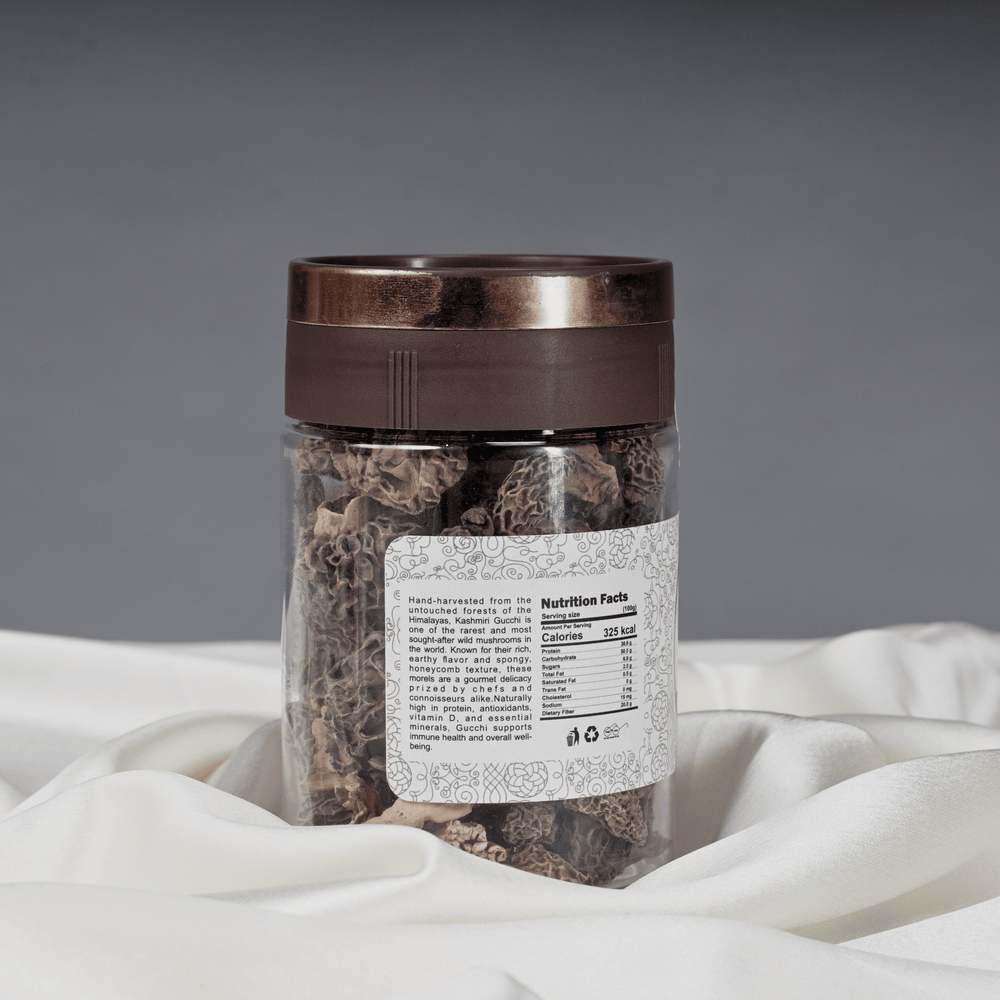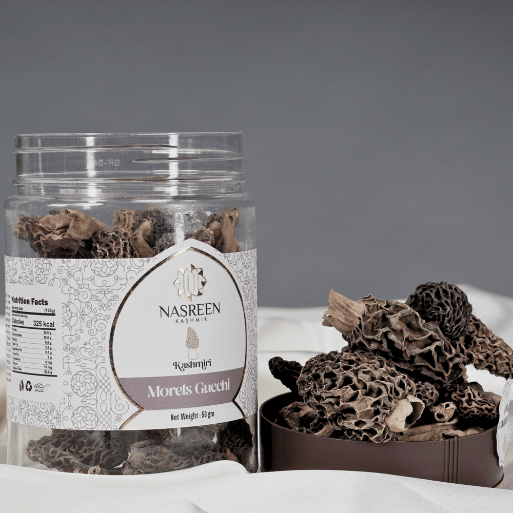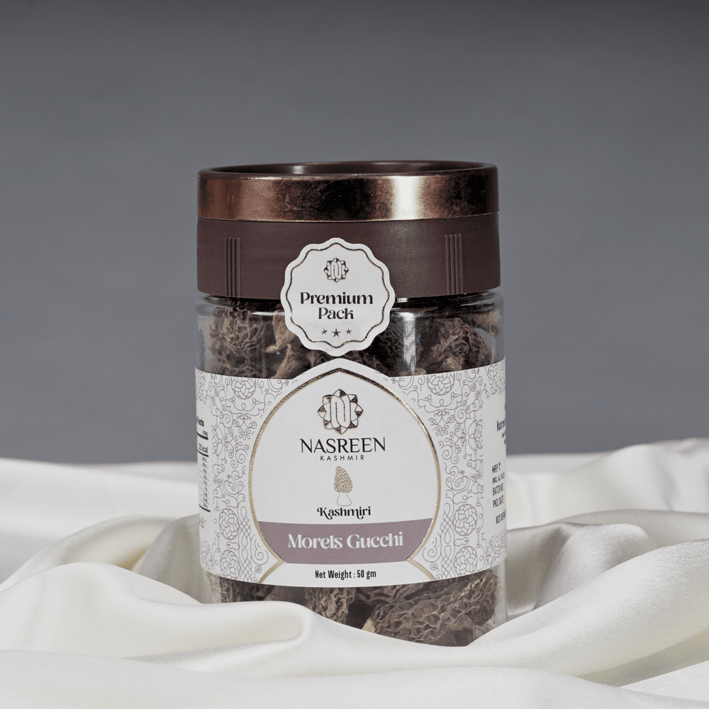 Savor the rare and exotic taste of Kashmiri Morels (Guuchi), carefully packed in a 50g jar to preserve their premium quality. Known for their rich earthy flavor and unique texture, these wild mushrooms are a delicacy in traditional Kashmiri cuisine. Rich in protein, fiber, and essential minerals, Morels (Guuchi) are perfect for enhancing gravies, curries, pulao, and other gourmet dishes.