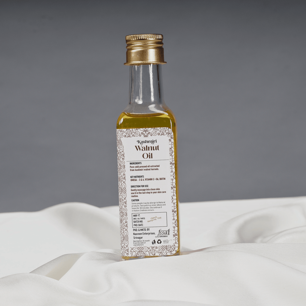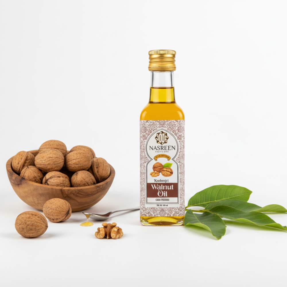 Experience the premium quality of Walnut Oil, a cold-pressed oil rich in omega-3 fatty acids, antioxidants, and essential vitamins. Perfect for skin, hair, and overall wellness, this light, nourishing oil promotes a healthy, radiant complexion and strong, silky hair. Its natural nutrients help protect against environmental stress, support cardiovascular health, and maintain hydration. Ideal for daily use or as part of a holistic beauty and wellness routine.