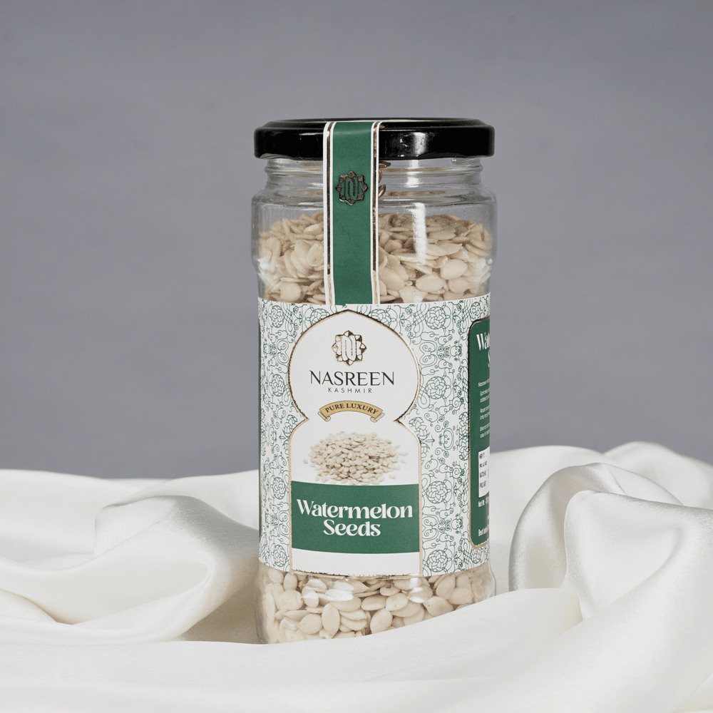 Discover the natural crunch and health benefits of premium watermelon seeds, hygienically packed in a PET jar to ensure freshness and long shelf life. These tiny seeds are powerhouse of plant-based protein, healthy fats, fiber, iron, and magnesium, making them a superfood for everyday nutrition. With their mild nutty flavor, they are a perfect snack choice or an excellent topping for meals.